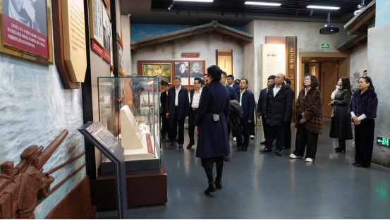 在叶剑英纪念馆内,同志们认真观看了“矢志共产宏图业——叶剑英同志生平事迹陈