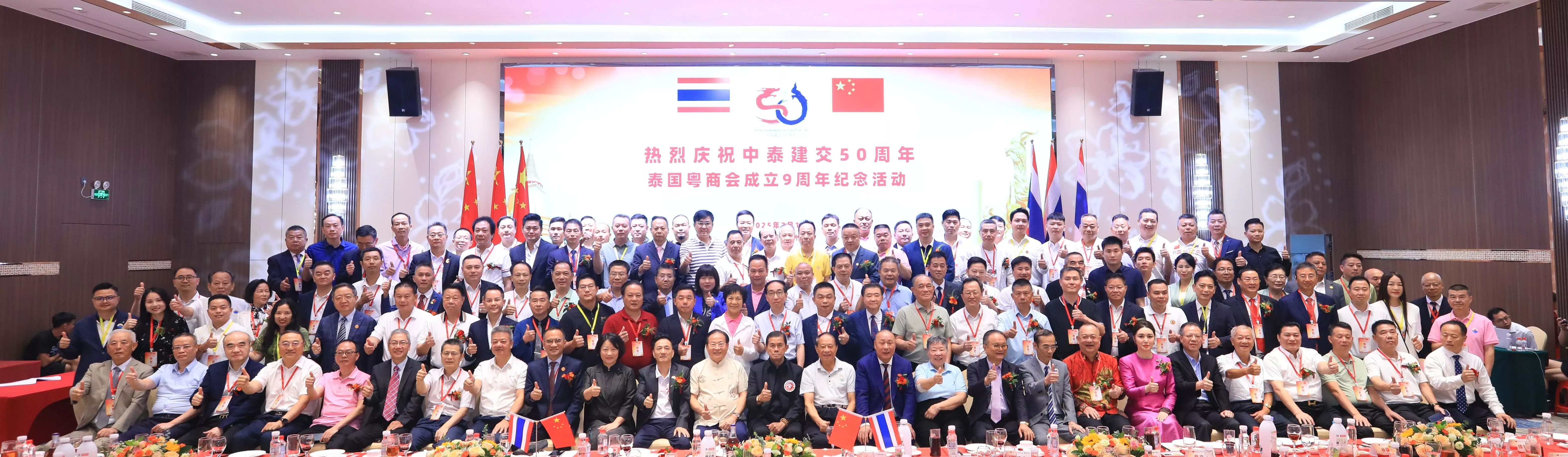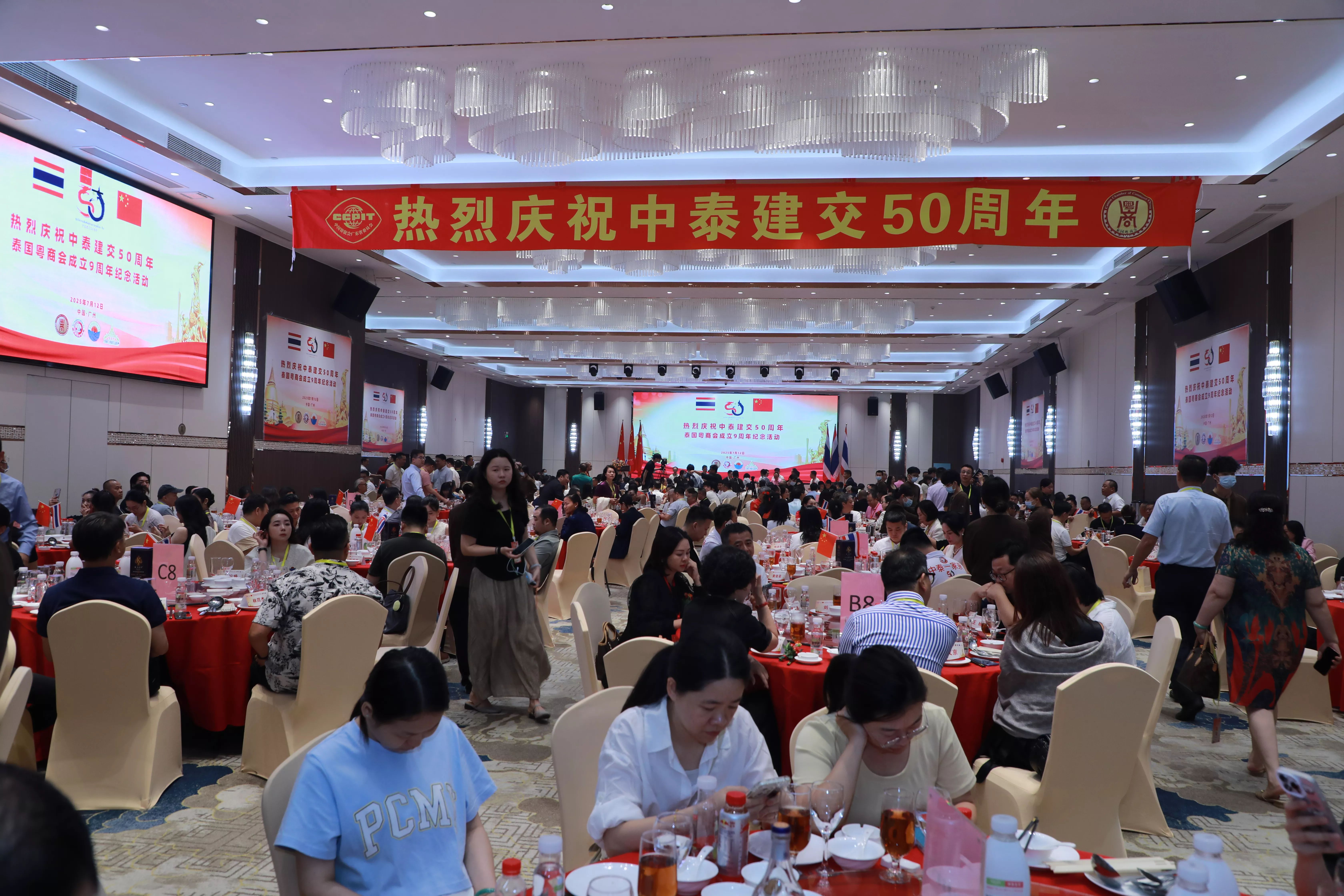 7月12日晚,以“中泰一家亲·共庆五十载”为主题的中泰建交50周年暨泰国粤商会成立9周年庆典在广州盛大举行。中泰两国政商侨界代表500余人齐聚一堂,共叙友谊、共谋发展。
