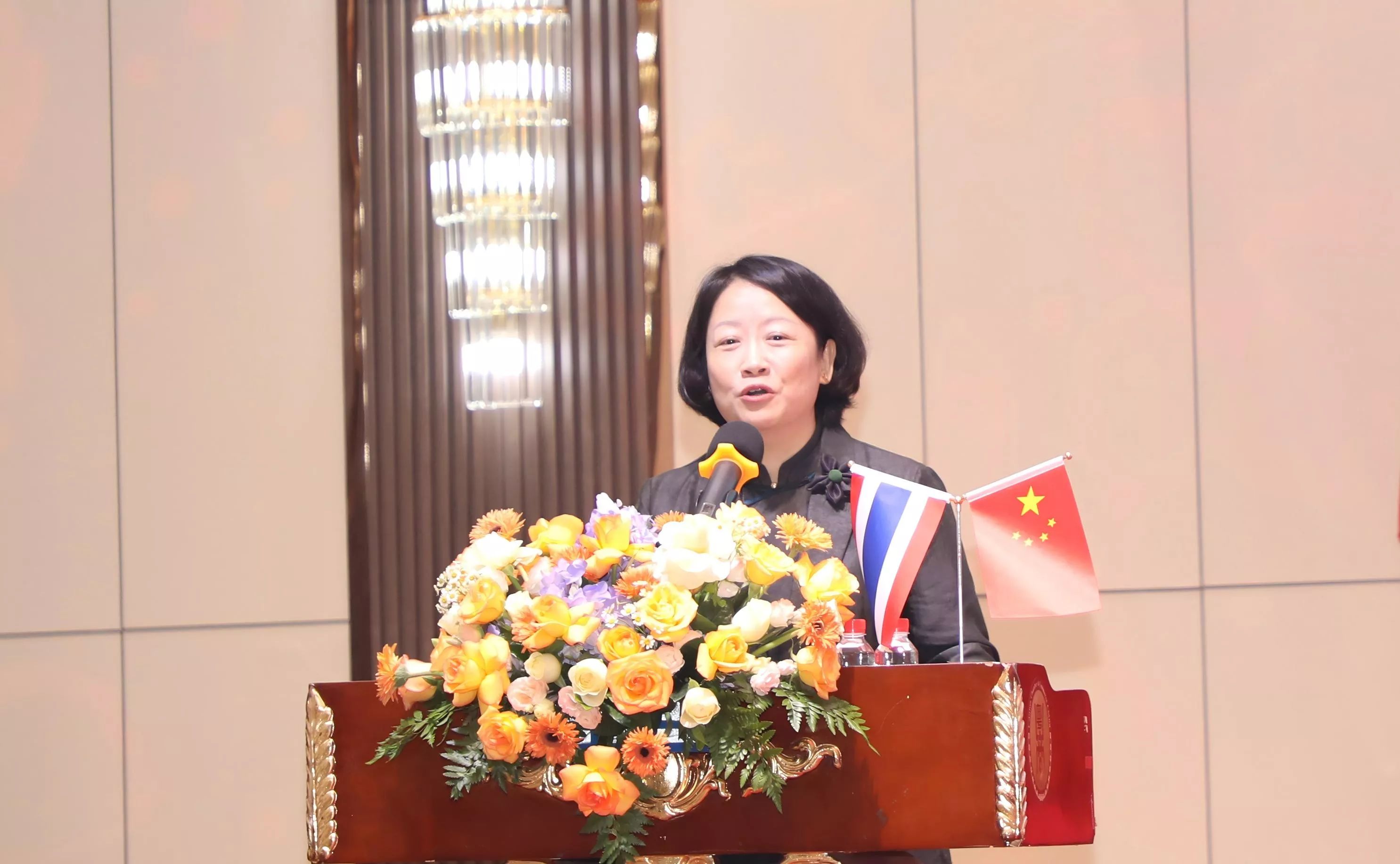 广东省贸促会副会长谢惠蓉代表广东省贸促会和广东国际商会致辞,回顾中泰友好历程,粤泰合作丰硕成绩。2024年广东与泰国进出口额达2247亿元人民币,占中泰贸易总额23%,泰国稳居广东在东盟第三大贸易伙伴。